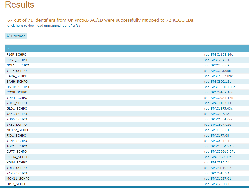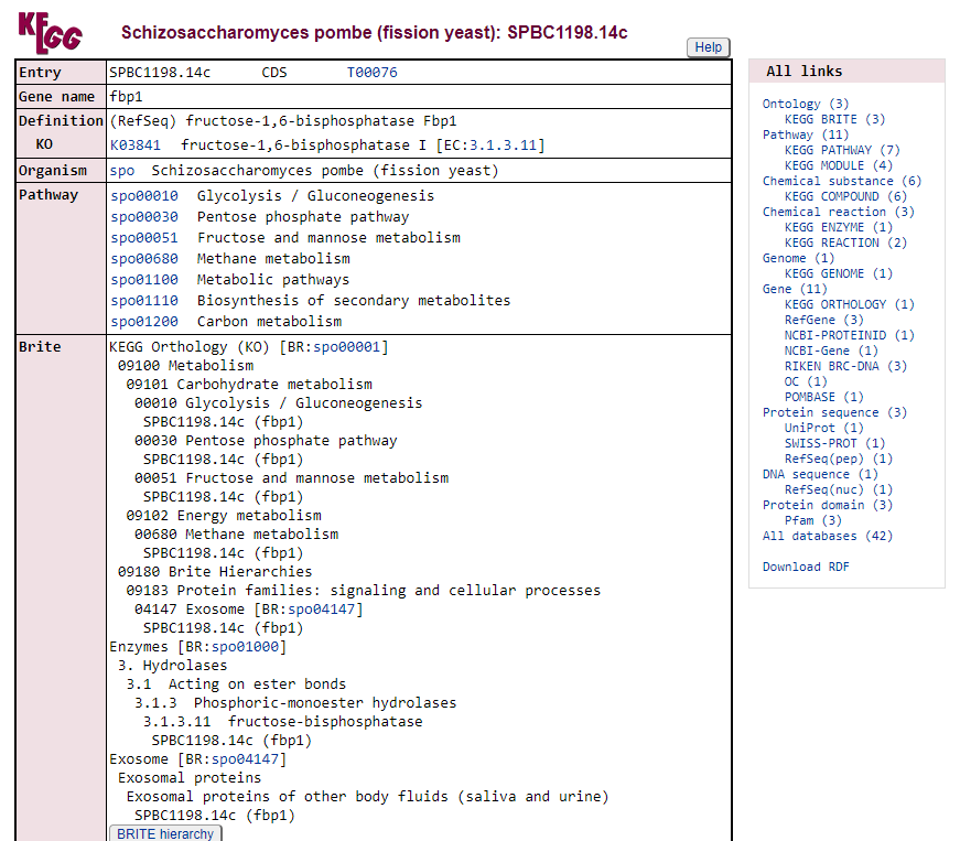 Agora irá abrir uma página contendo os identificadores KEGG que dão acesso diretamente a esse banco de dados: