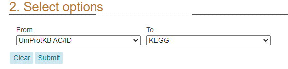 Retorne à página anterior do seu browser para fazermos uma nova busca utilizando os mesmos identificadores. Desta vez, vamos selecionar To KEGG dentro do grupo de Genome: