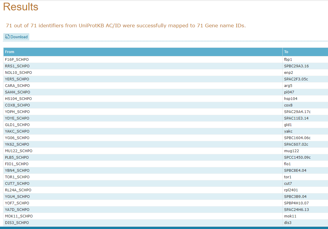 Irá abrir então uma página contendo todos os gene names dos seus identificadores: