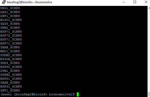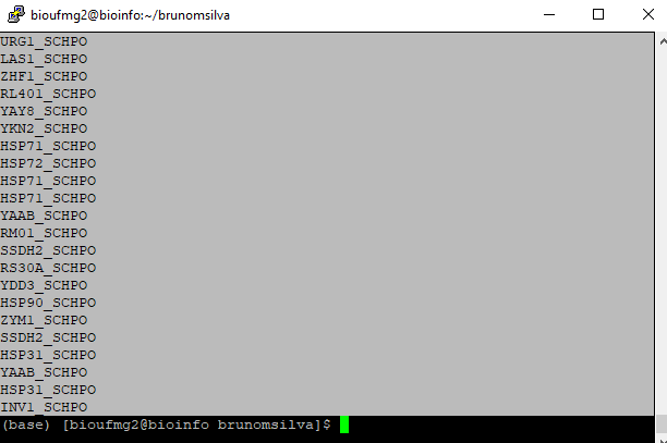 Vamos agora identificar quais genes essas proteínas pertencem utilizando a plataforma online do Uniprot na aba de Get Gene Name. Primeiramente vamos printar somente a segunda coluna do nosso blast, referente aos nomes das proteínas: