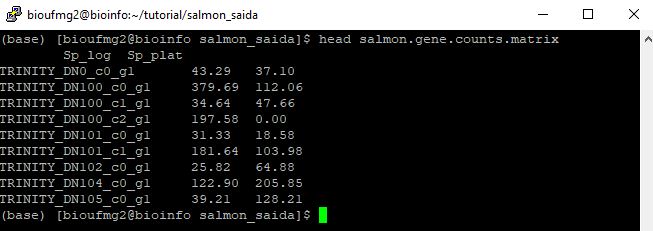 /home/bioufmg2/anaconda3/pkgs/trinityrnaseq-v2.12.0/util/abundance_estimates_to_matrix.pl --est_method salmon --out_prefix salmon_saida/salmon salmon_saida/sp_log/quant.sf salmon_saida/sp_plat/quant.sf --gene_trans_map trinity_saida/Trinity.fasta.gene_trans_map --name_sample_by_basedir
