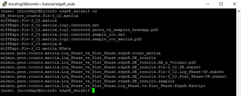 Com os cálculos do edgeR realizados, vamos agora ver os arquivos de saída. Vamos para a pasta do edgeR_saida: