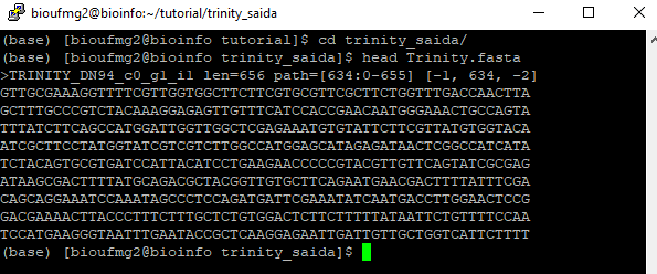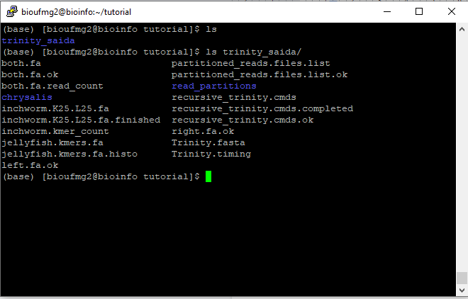 Após completar a montagem, será criado uma pasta chamada trinity_saida, tal como o seu output foi descrito. Dentro desta pasta é possível encontrar todos os dados relacionados à montagem dos transcritos.