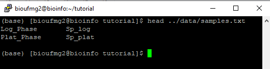 O arquivo samples.txt é muito importante nessa etapa uma vez que ele indica qual a condição e suas replicatas para o programa. Ele possui somente duas colunas, com suas linhas separadas por tabulações, e os nomes destas colunas devem estar de acordo com o nomes do passo 7, dentro do arquivo que possui o final .counts.matrix. Exemplo: