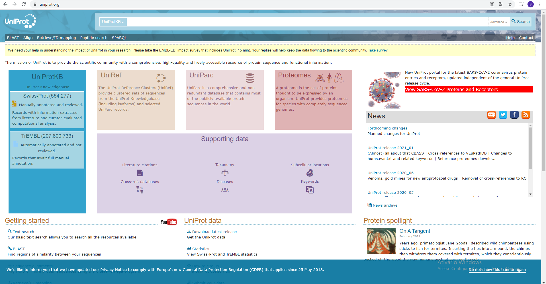 Acesse agora, numa nova aba do seu navegador, o site uniprot.org.